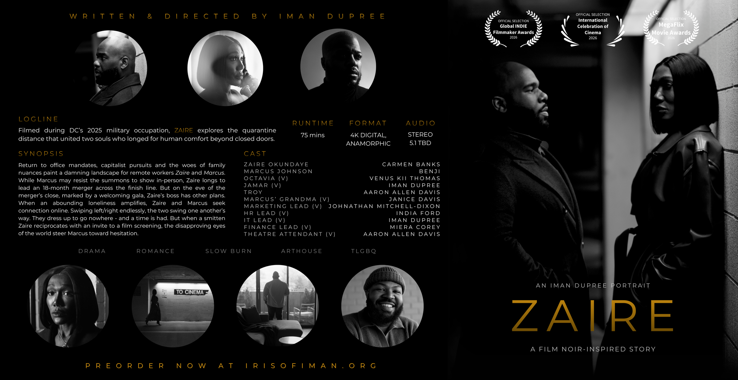 Benji as “Marcus” (L), Carmen Banks as “Zaire” (R) in the film ZAIRE (2026) © 2025 Iman DuPree